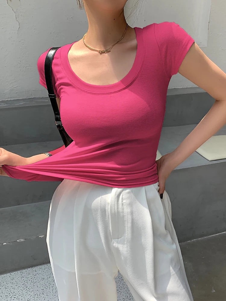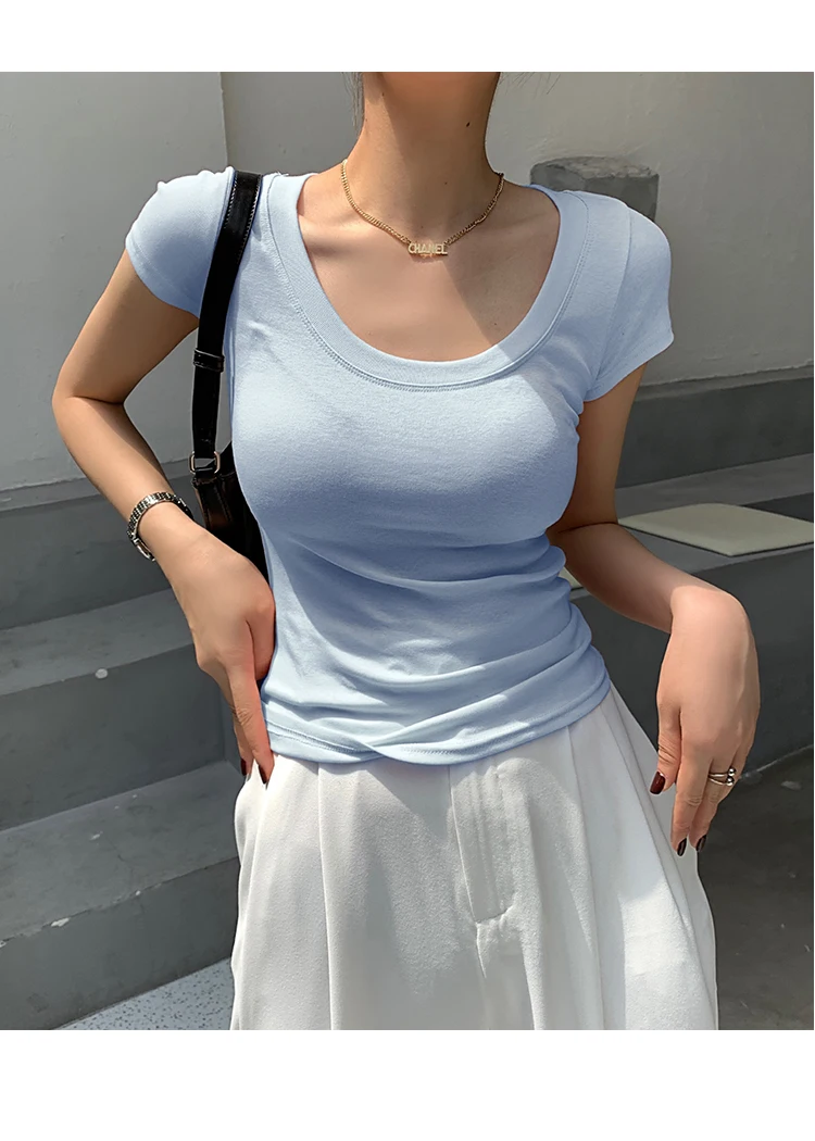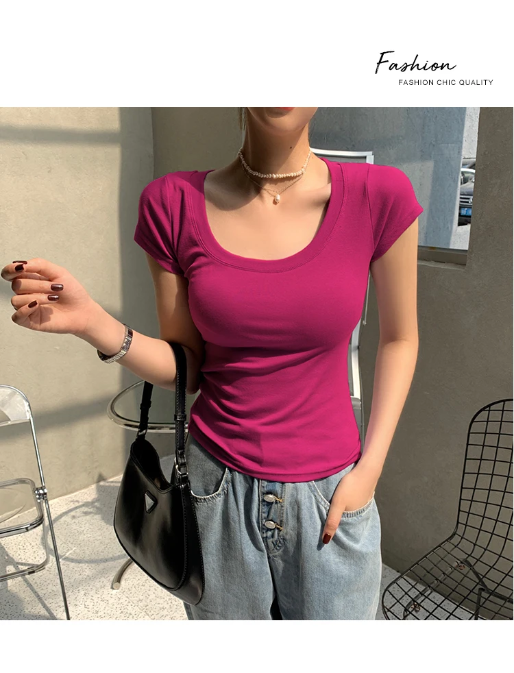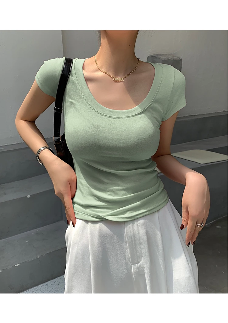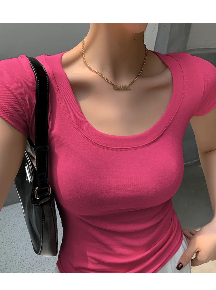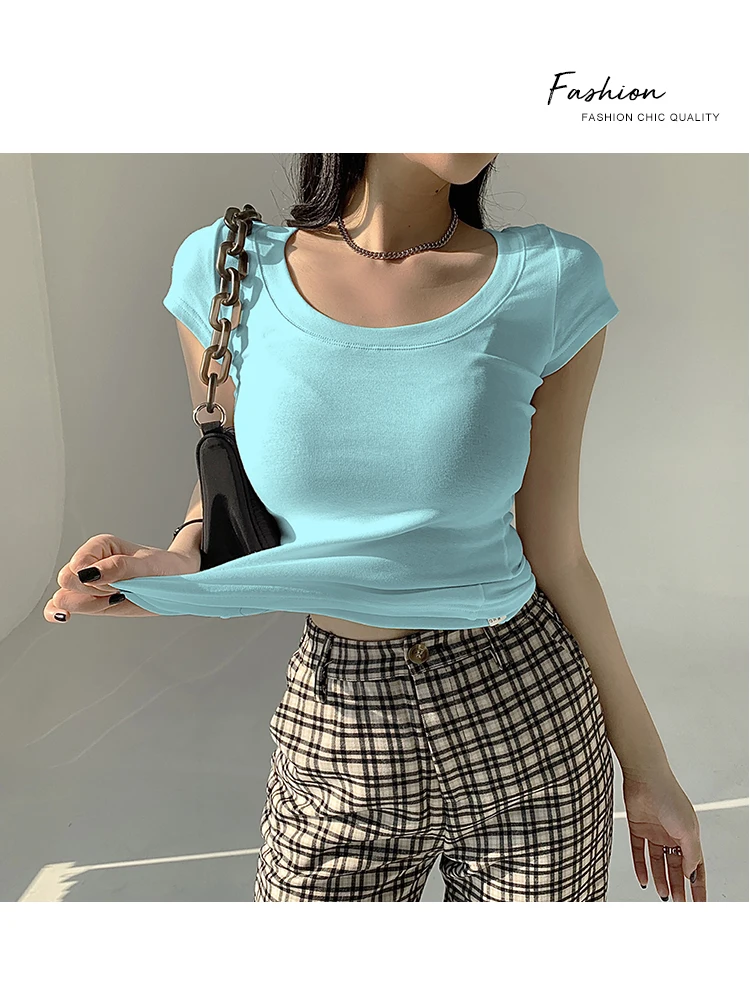 AOSSVIAO 100% Cotton T Shirt Women 2025 Summer New Slim Solid Basic Tees 16 Color Casual Tshirt Korean O Neck Tops