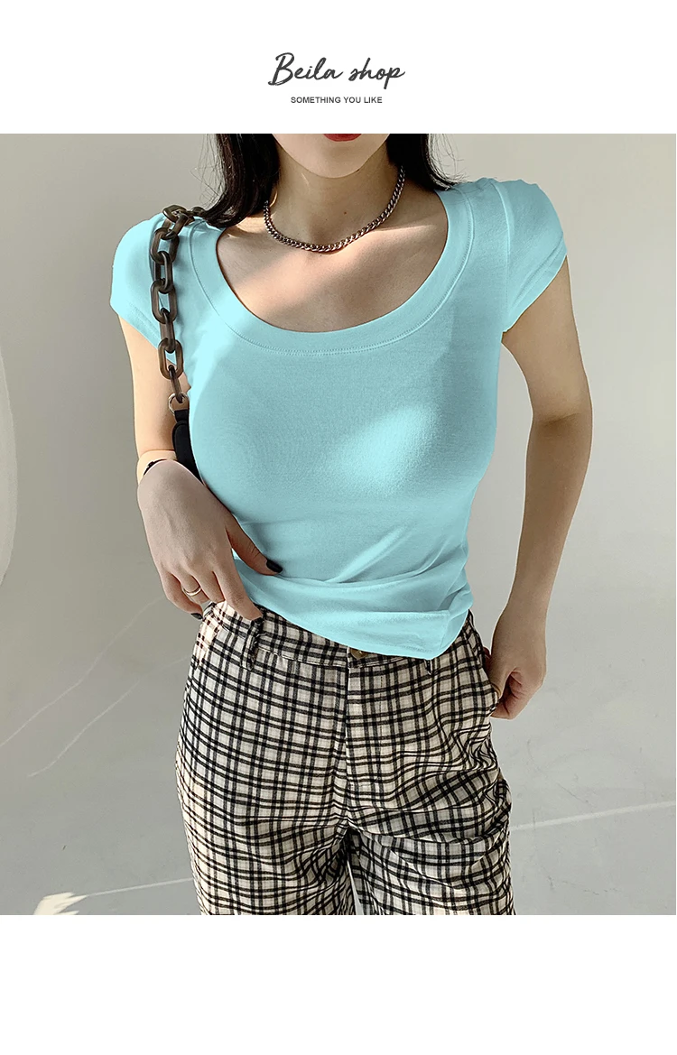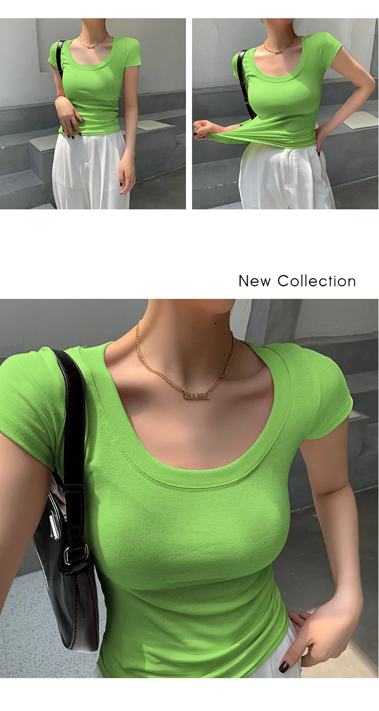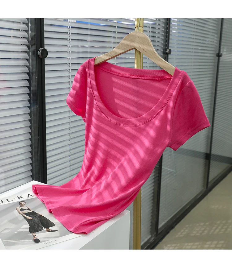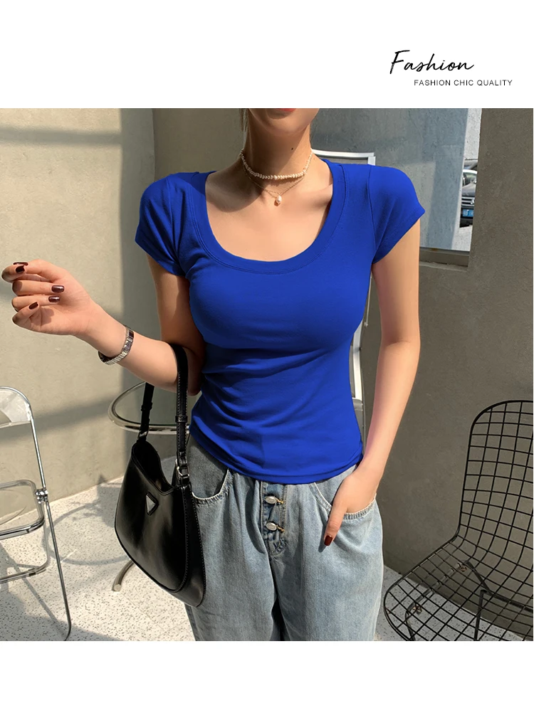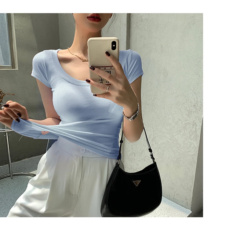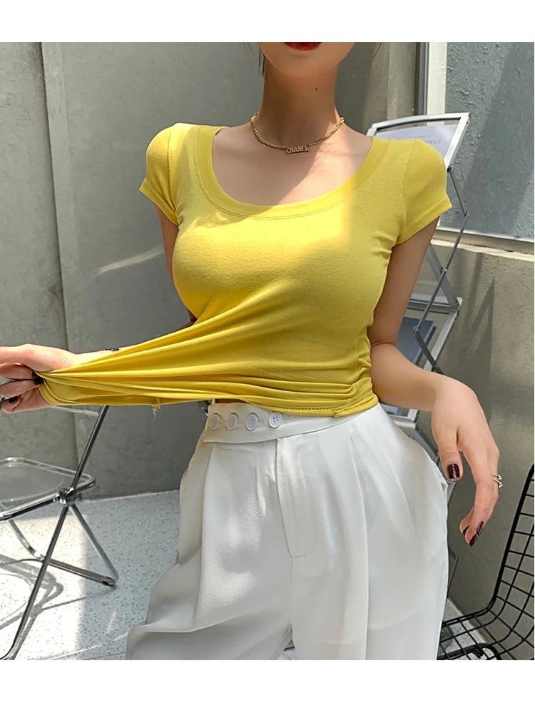 AOSSVIAO 100% Cotton T Shirt Women 2025 Summer New Slim Solid Basic Tees 16 Color Casual Tshirt Korean O Neck Tops