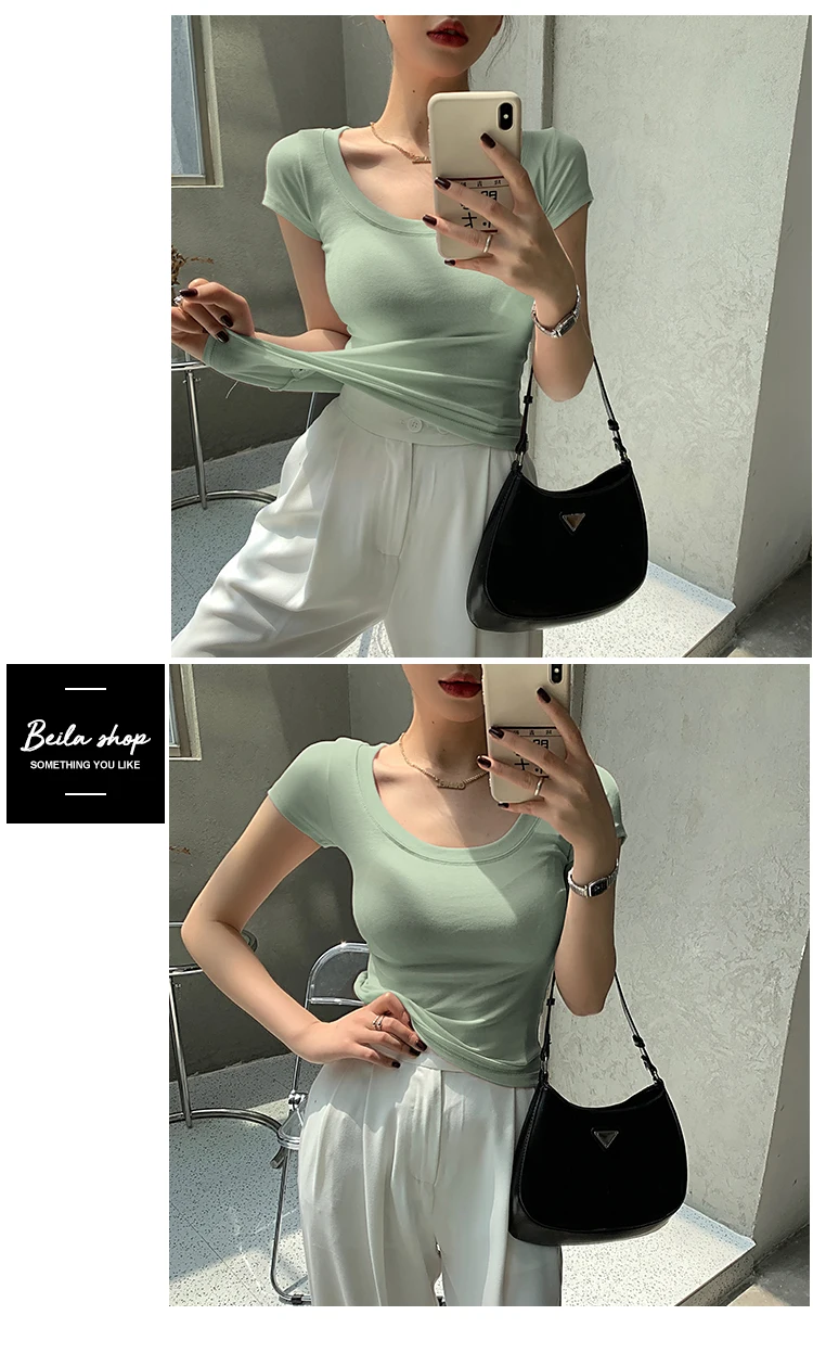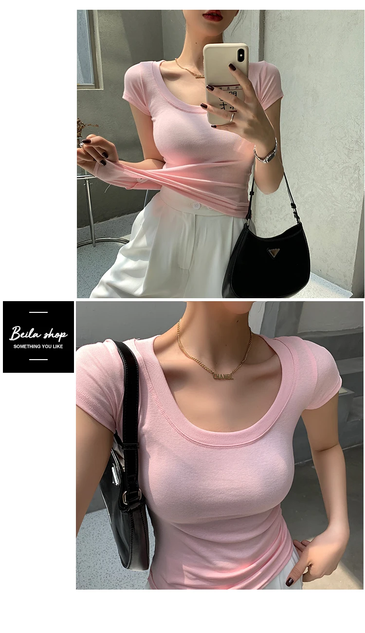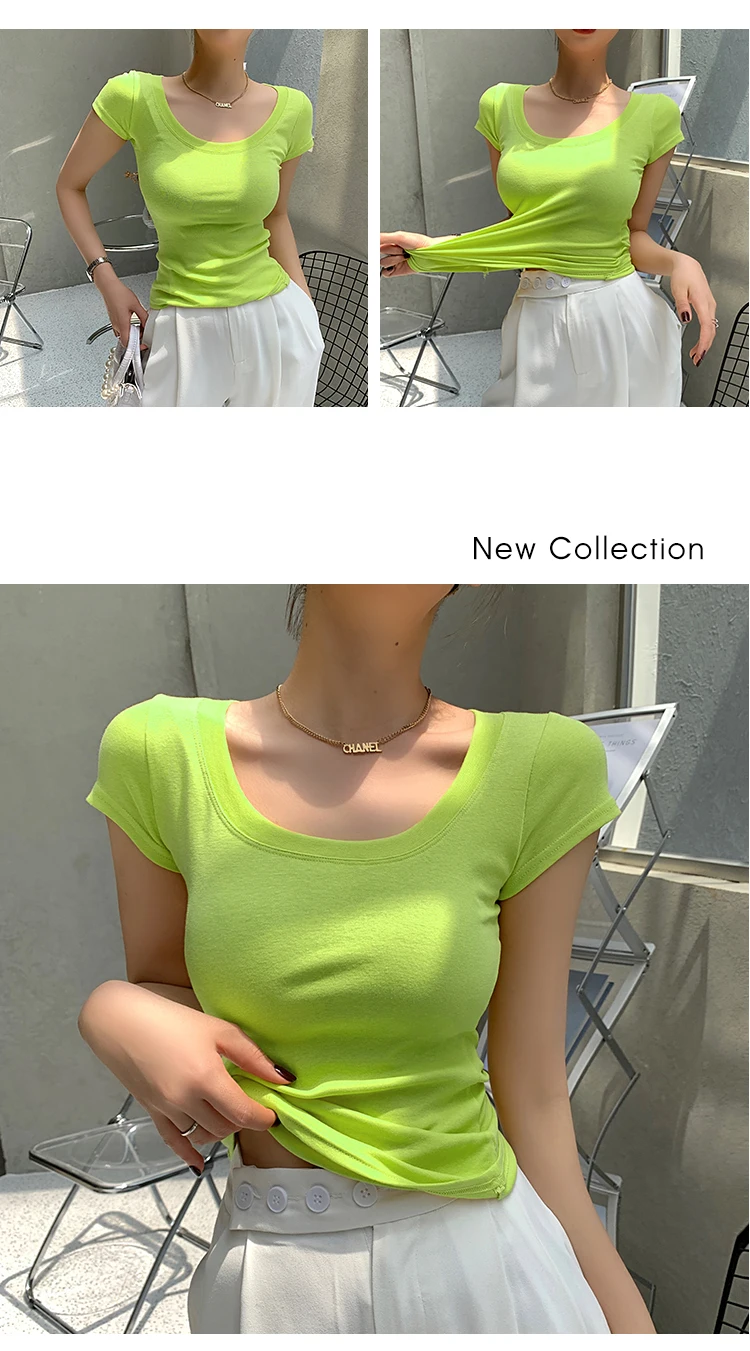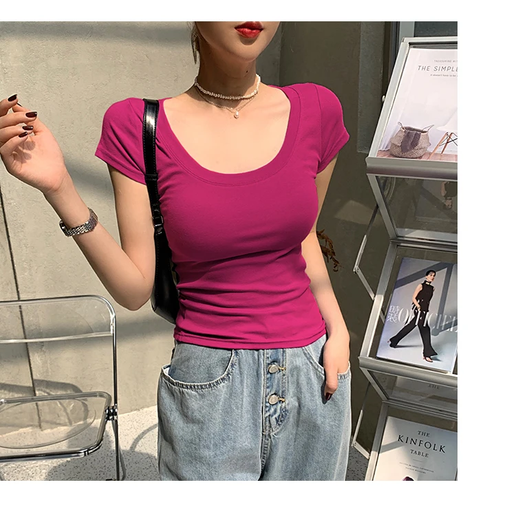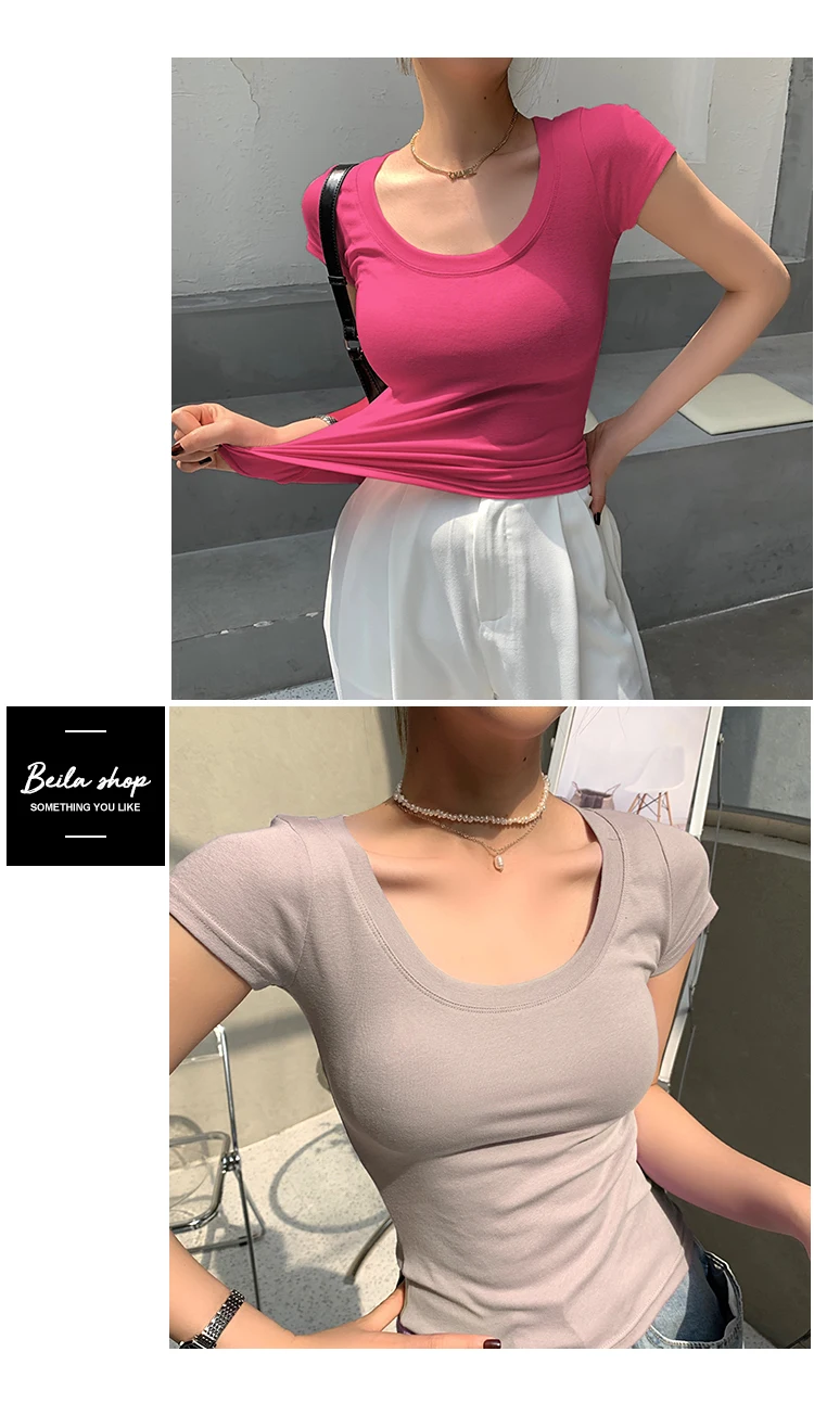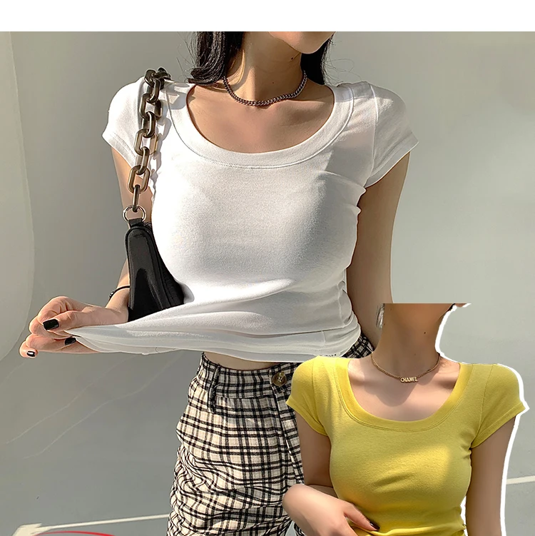 AOSSVIAO 100% Cotton T Shirt Women 2025 Summer New Slim Solid Basic Tees 16 Color Casual Tshirt Korean O Neck Tops
