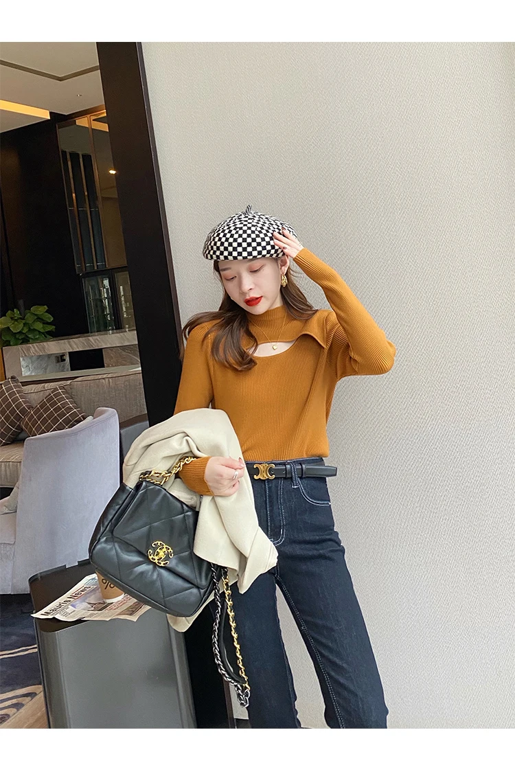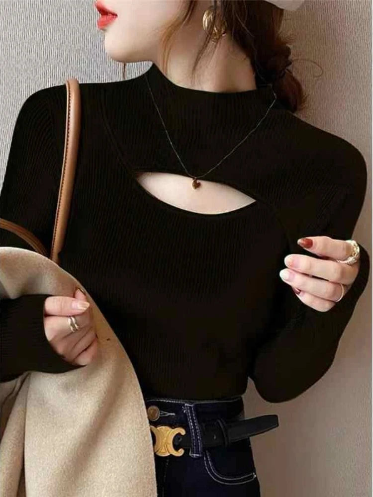 AOSSVIAO Hollow-out Turtleneck Knitted Women Sweater Ribbed Pullovers Autumn Winter Basic Women Sweaters Slim Fit Soft Warm Tops
