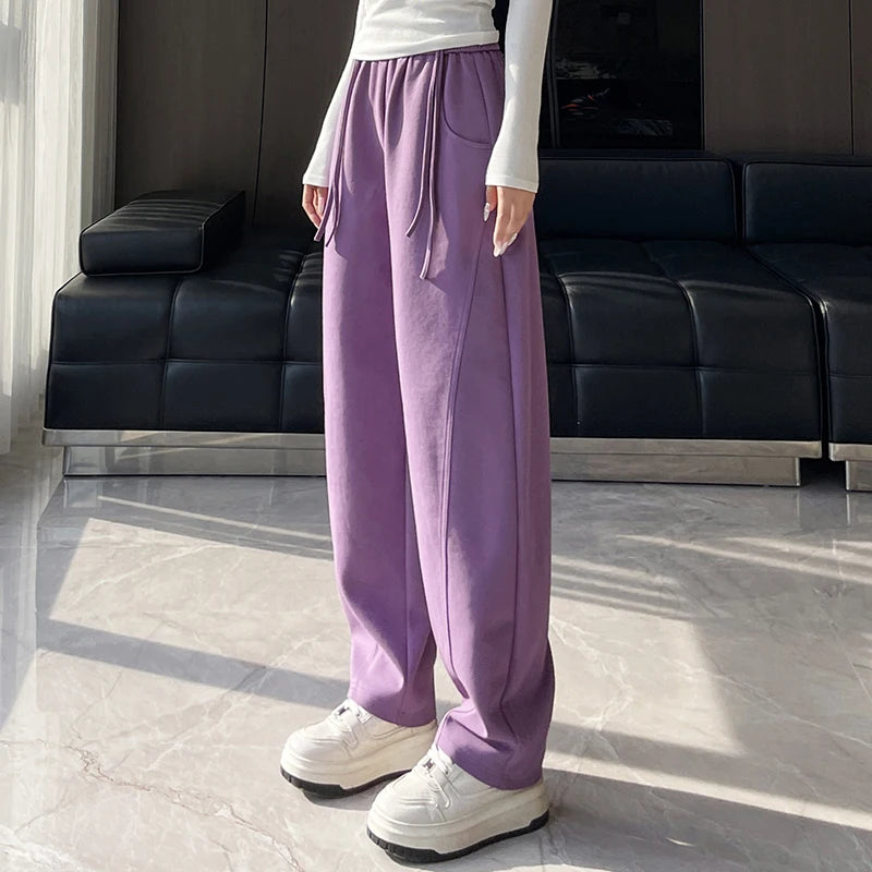 Purple sports sweatpants, banana curved knife pants, women's 2025 spring new style plus size fat mm casual pants M-5XL