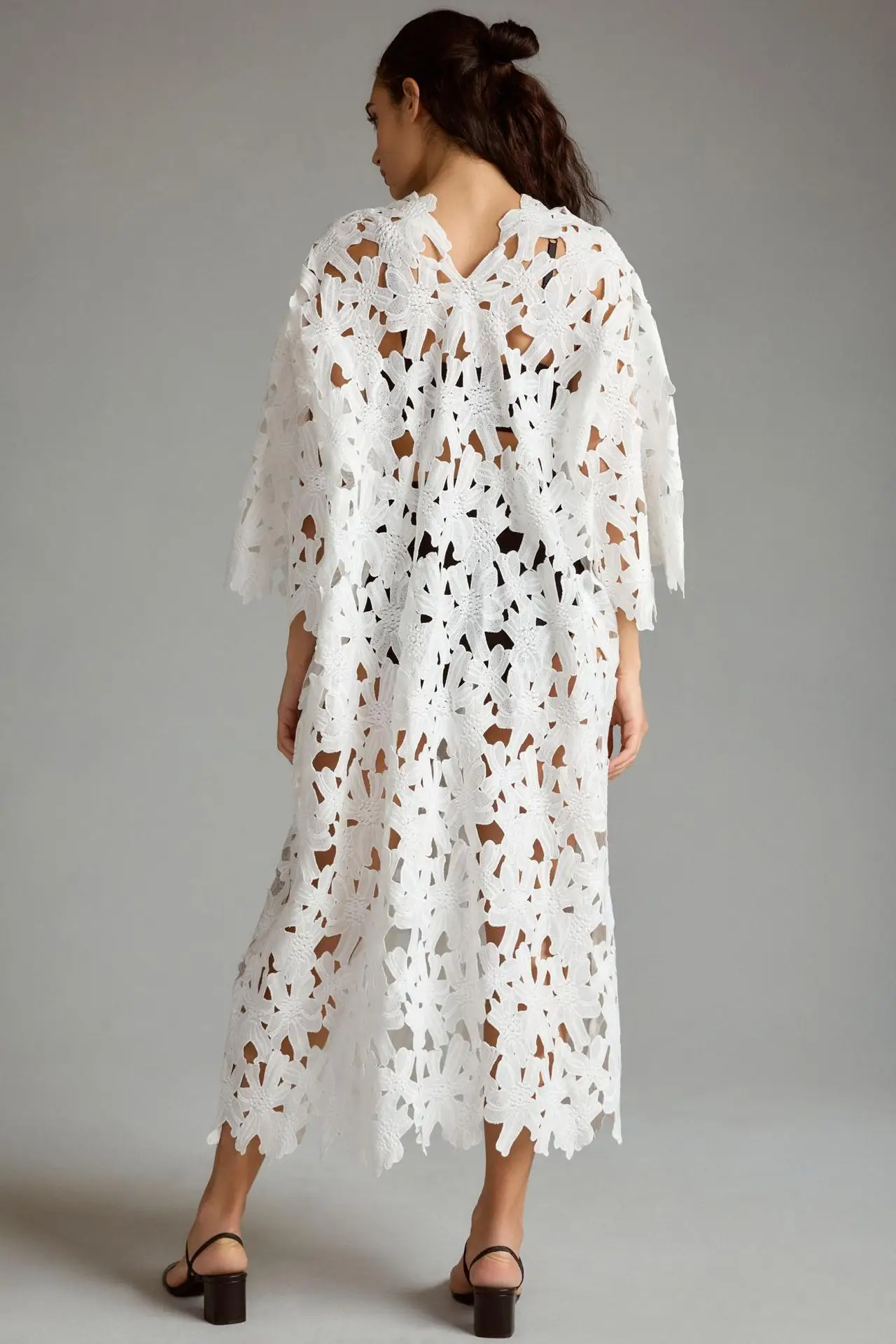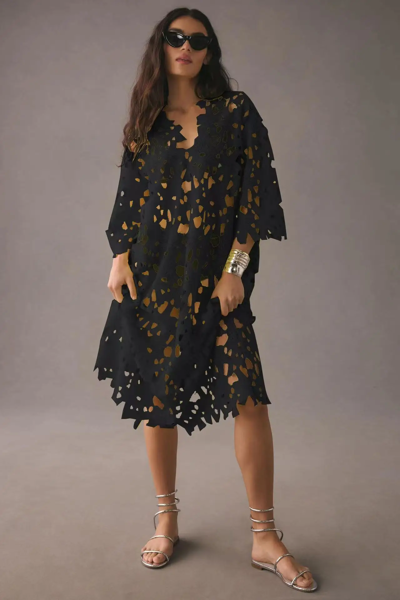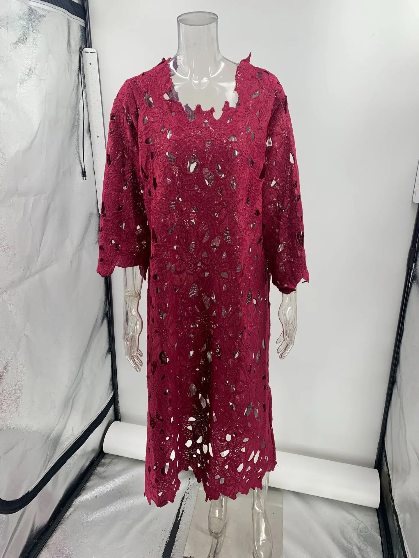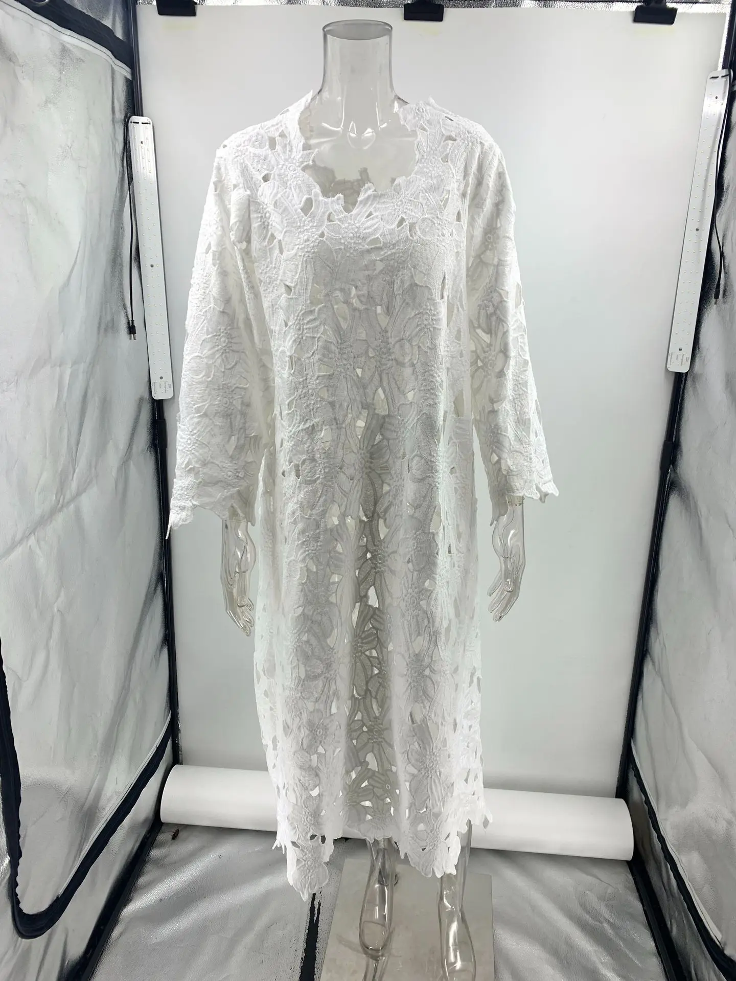 Sexy Lace Hollow Out V-neck Dress For Women Elegant Solid Long Dresses Ladies Summer Casual Beach Vacation Loose Vestidos