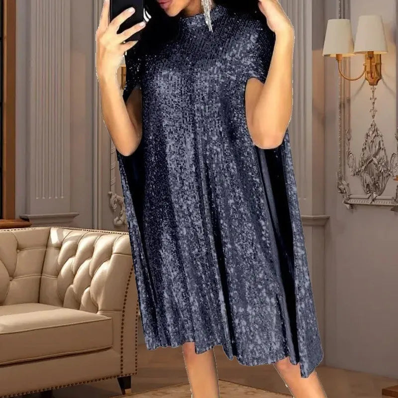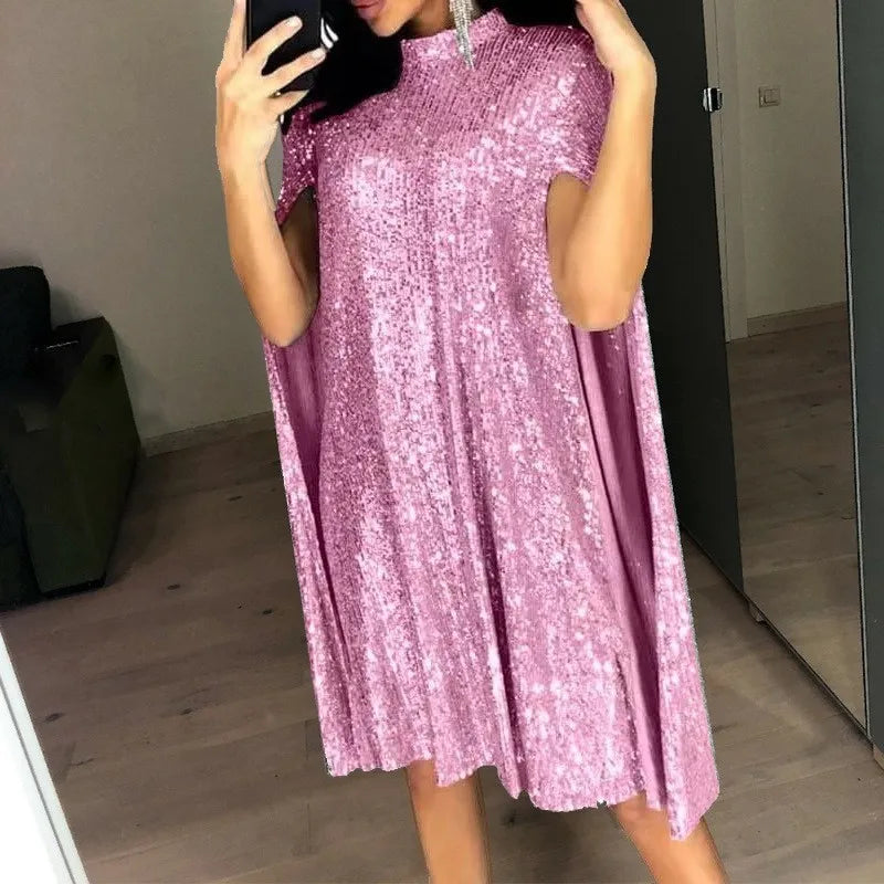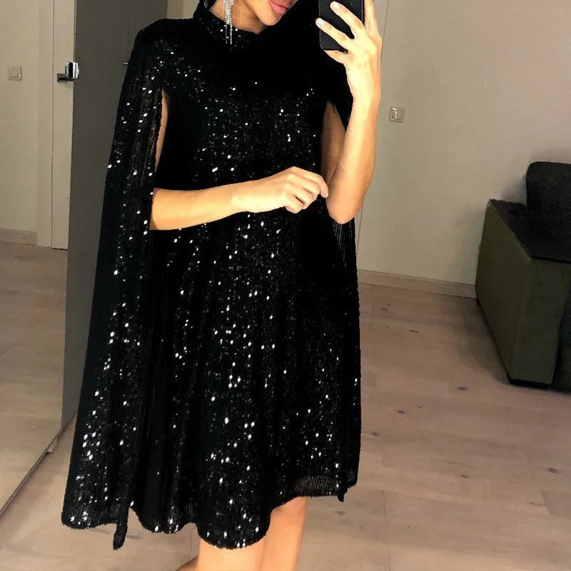 Sexy Party Sequin Glitter Dress For Women O Neck Sequins Cloak Sleeves Dresses Elegant Woman Dress 2025