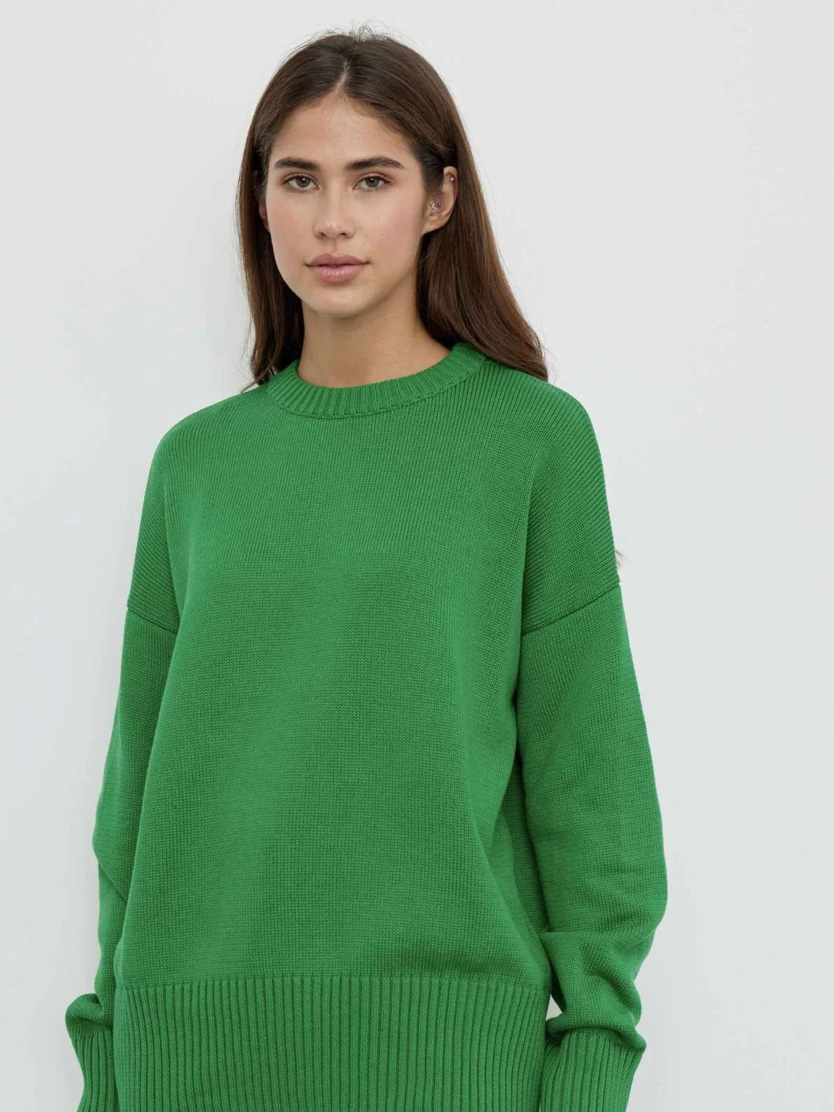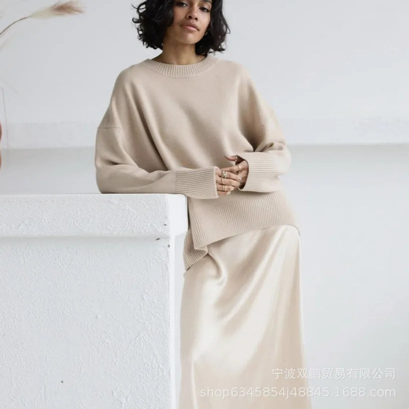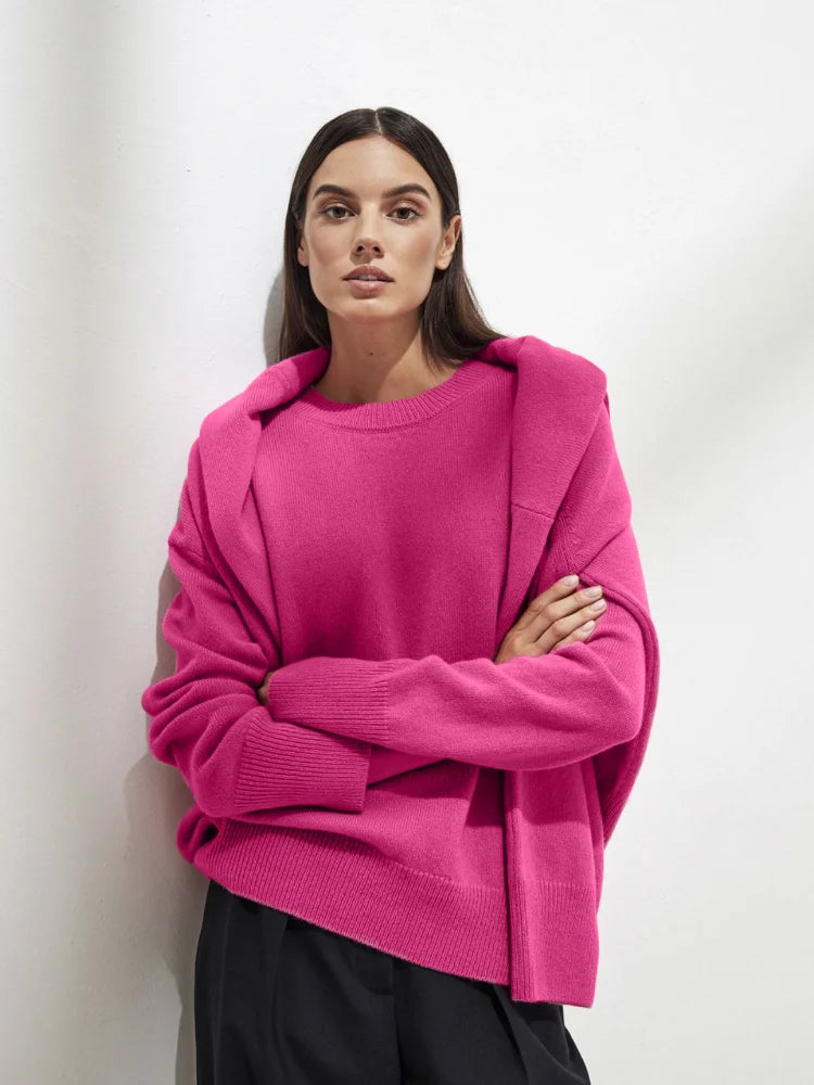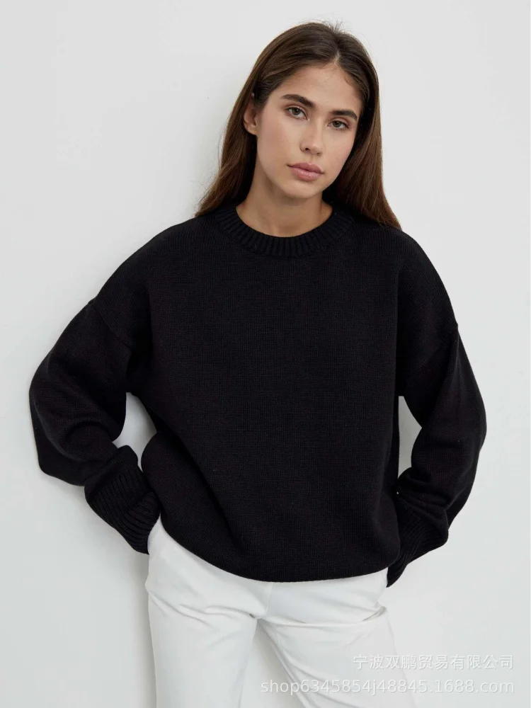 Solid Knitted Women Pullover Casual Round Neck Full Sleeve Loose Fit Basic Sweaters Lady New Fashion Autumn Daily Street Sweater