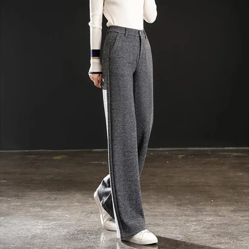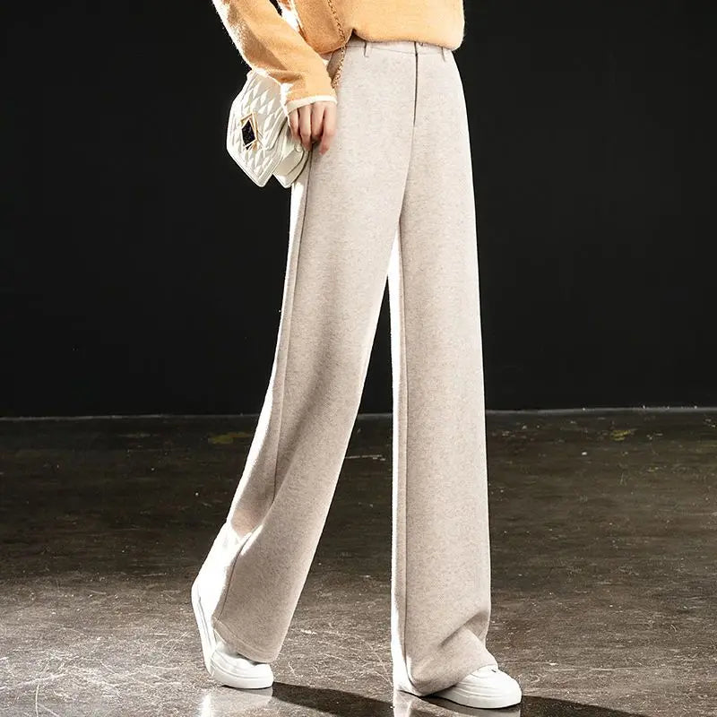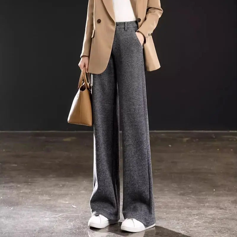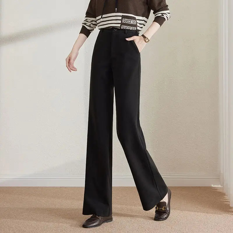 Women's New Slim Casual Pants High Waist Trousers Straight Loose Thickened Wide-leg Pants